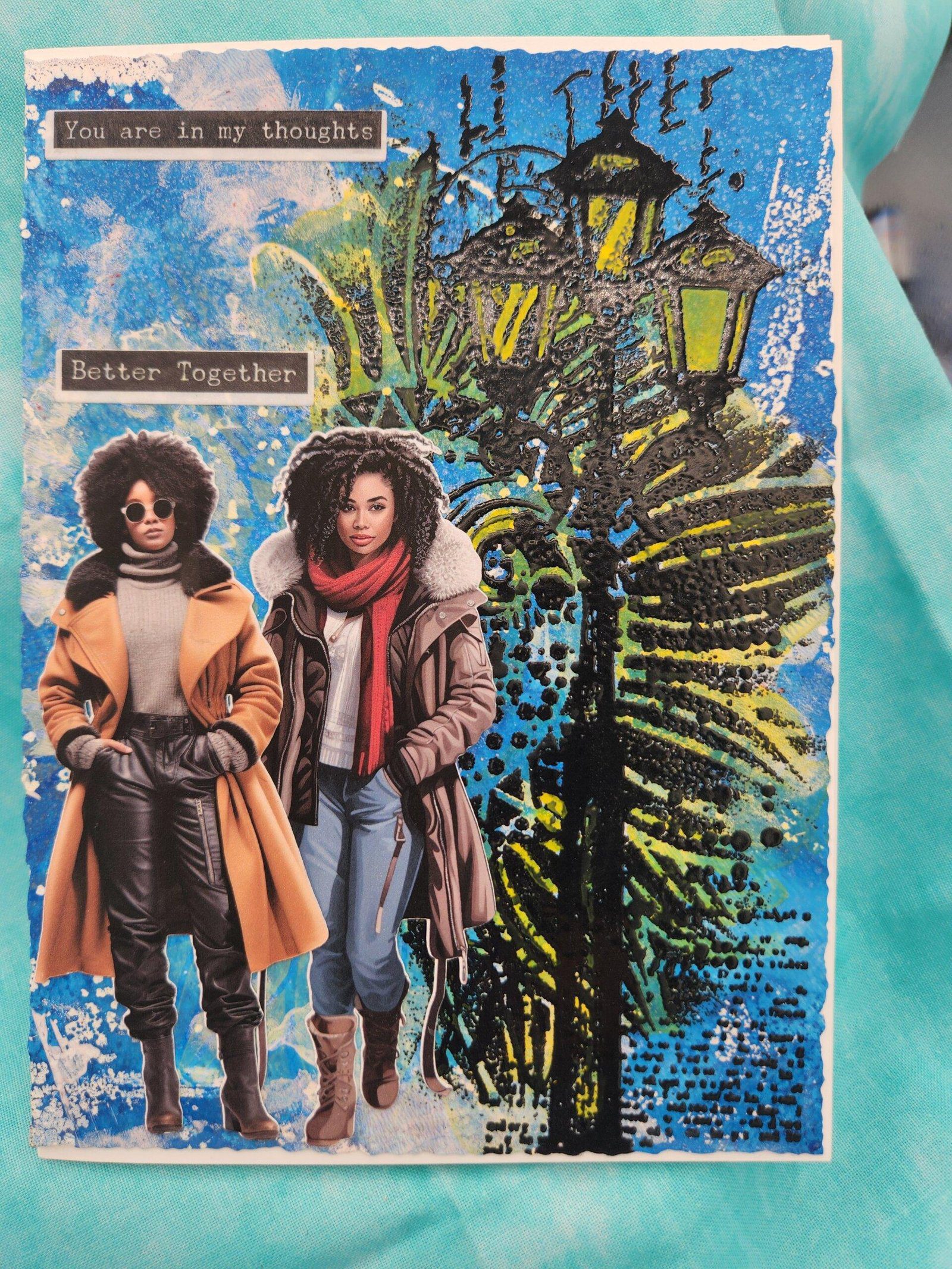 Introducing the Better Together – All Occasion Card, perfect for those moments when you really want to show someone that you care. Featuring a stunning artwork of two women standing by a lightpost, this card is both artistic and colorful. With its versatile design, this all occasion card is suitable for all kinds of occasions, from birthdays to congratulatory messages. Make someone’s day with this beautiful card and let them know that they are important – because together, we are better. Order today and join the celebration of life’s special moments.