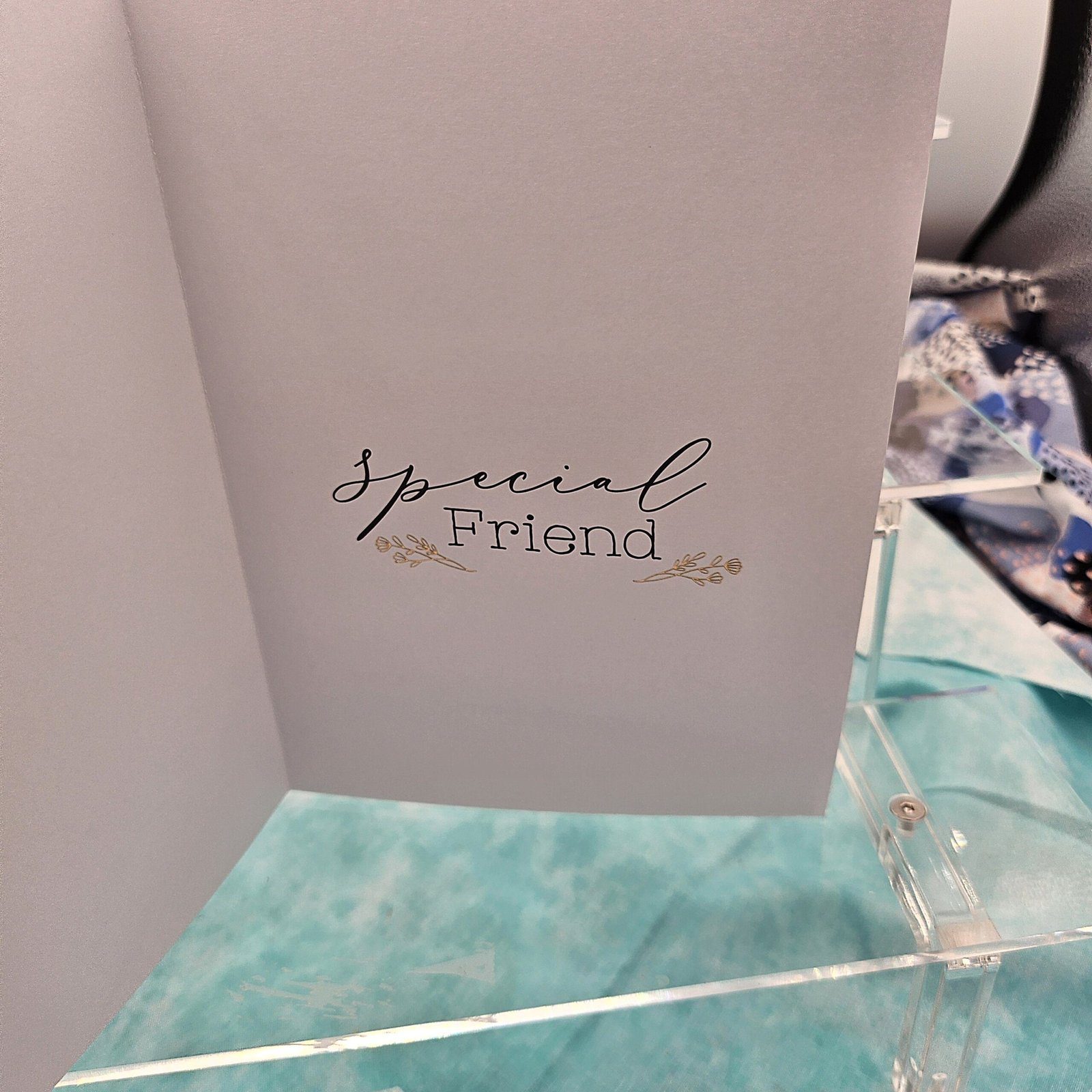 Experience the heartfelt artistry of the Special Friend Greeting Card from FSGDesigns. This handmade greeting card is a colorful and artistic way to show your appreciation to that special person in your life. Crafted with passion and inspiration, it serves as an encouraging reminder of your cherished friendship. Ideal for any occasion, this card embodies the unique blend of creativity and warmth that is the hallmark of FSGDesigns. Make your message unforgettable with this beautiful, handcrafted treasure. 5×7 card with Envelope