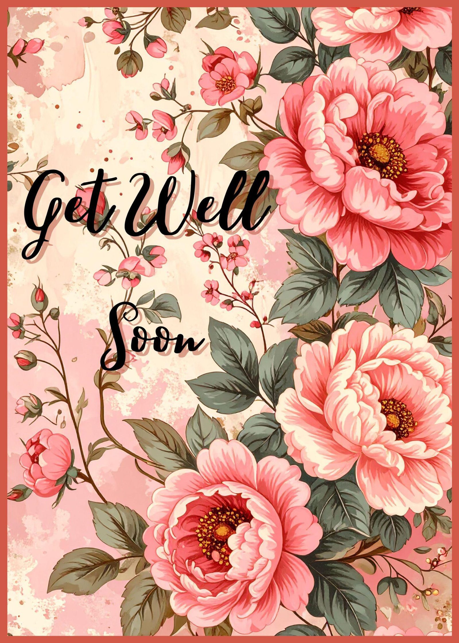 Send comfort, encouragement, and warm wishes with this elegant floral Get Well Soon card. Featuring soft pink blooms and a gentle botanical design, this card offers a thoughtful way to let someone know you’re thinking of them during recovery or difficult days.