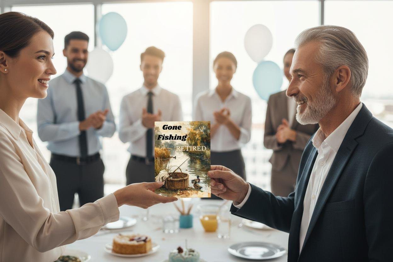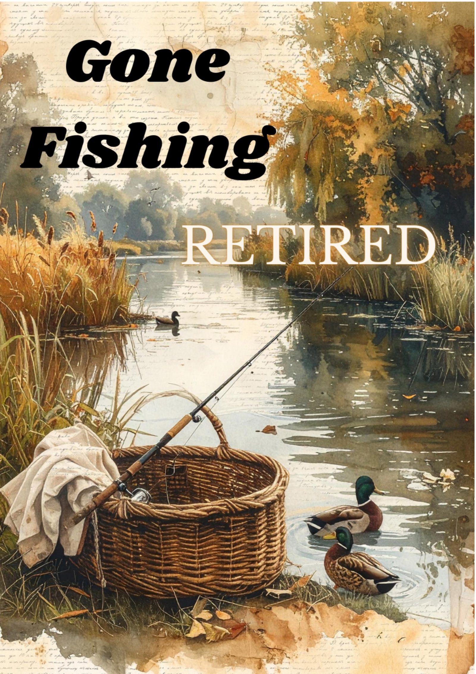Celebrate retirement with peaceful moments and well-earned freedom. This artistic retirement greeting card features a tranquil fishing scene with warm autumn tones, calm waters, and the message “Gone Fishing – Retired.” Perfect for honoring someone ready to enjoy slower days, outdoor adventures, and the next chapter of life.