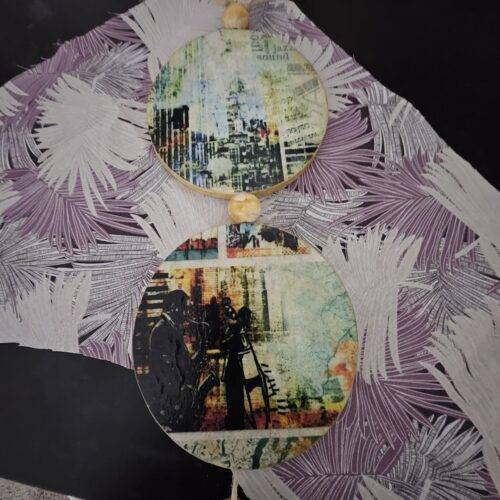 Discover the perfect blend of art and passion with Diva’s & Jazz Swinging’ Decor from FSG Designs. This handmade, decoupaged wooden circular door hanger includes four two-sided round pieces, each featuring stunning jazz scenes or the elegant depiction of beautiful Black women. Connected by durable rope, this hanging decor is more than just a door hanger—it’s a vibrant conversation piece designed for music lovers and art aficionados alike. Add a touch of soulful sophistication to your space with this unique handcrafted item, perfect for family, friends, and your home. Approx. 30 in long, each circle round is 4.5 x 4.5. (4) circles.
